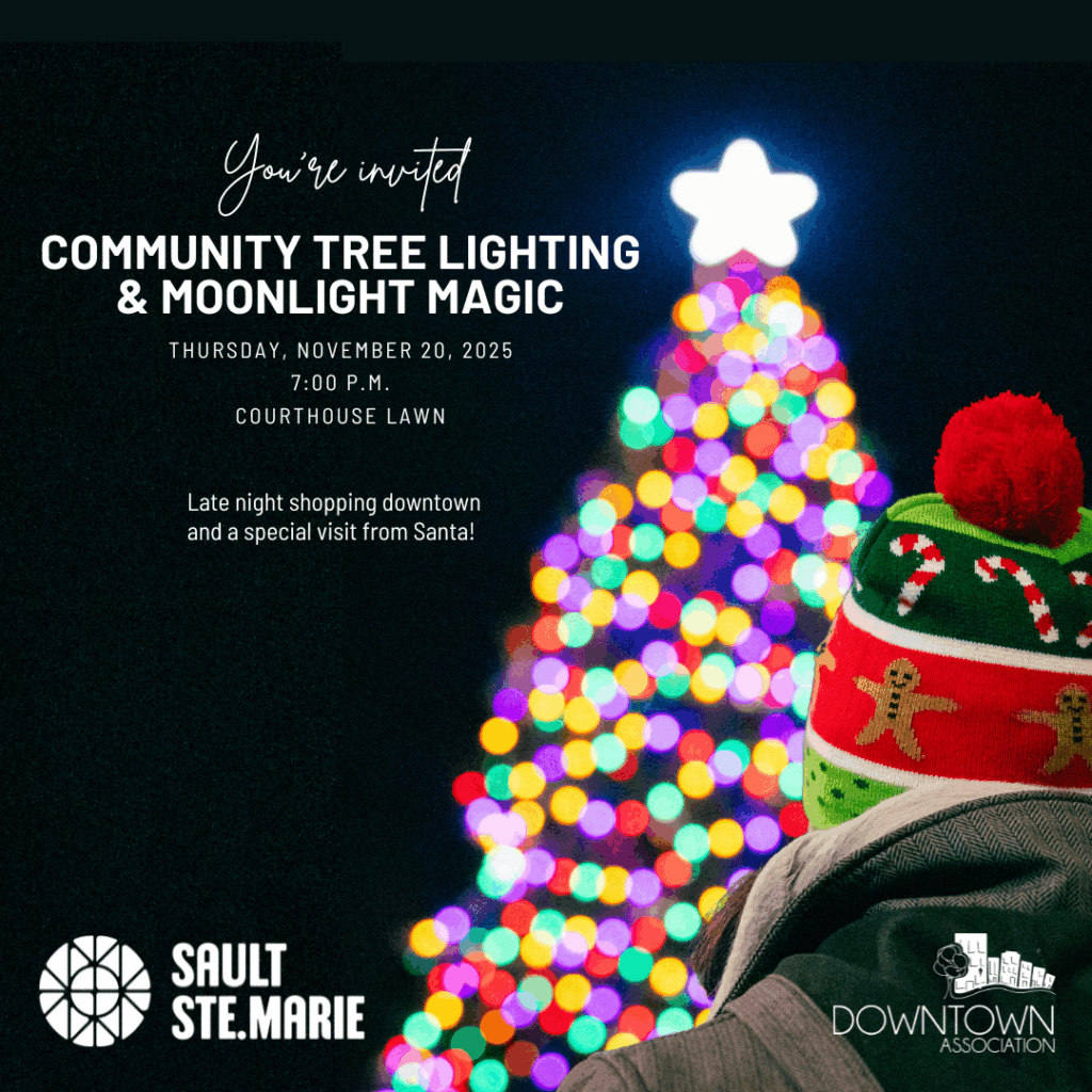 Celebrate the magic of the season with friends and family at the Downtown Association Sault Ste. Marie Moonlight Magic event and the lighting of the Community Tree Thursday, November 20, in front of the courthouse.