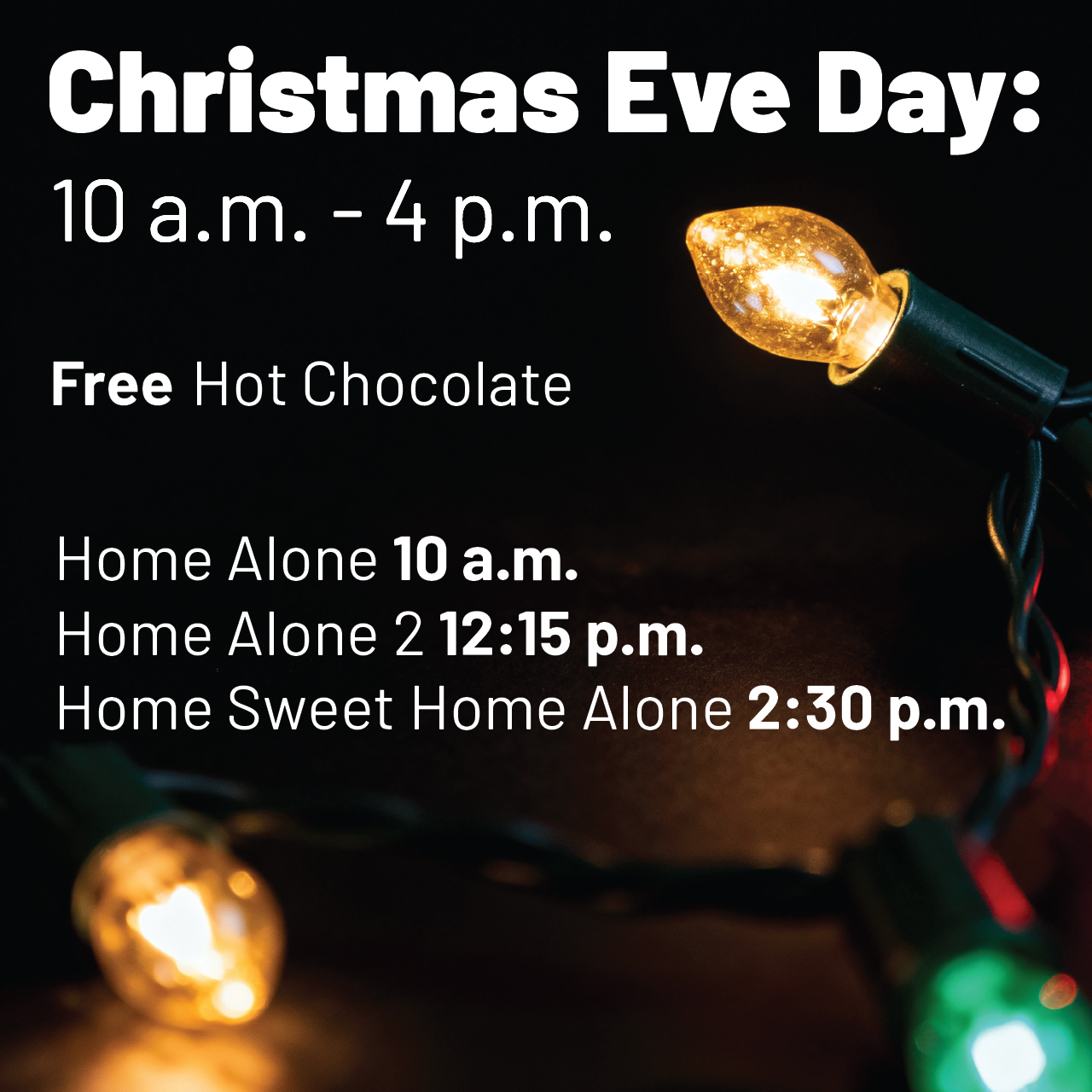 Celebrate Christmas Eve at the Plaza with a festive Skate & Movie Marathon! Enjoy a cozy day on the skate loop with free hot chocolate, then warm up and watch the Home Alone classics on the big screen: